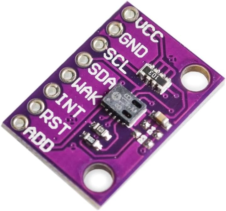 使用に際してはVCC、GND、SCL、SDAといったI2Cの4本に加え、WAKEピンをGNDに落とす必要があるとのことで、センサ基板上のピンにジャンパを追加しておきます(RSTピンは何もせずそのまま)。